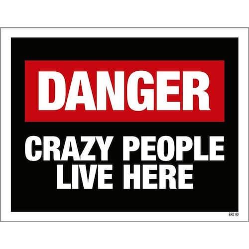 Kit 3 Placas Decorativa - Danger Crazy People Live Here Placas de sinalizaço fabricadas com poliestireno de alto impacto PSAI de 2mm e impressão ultravioleta.