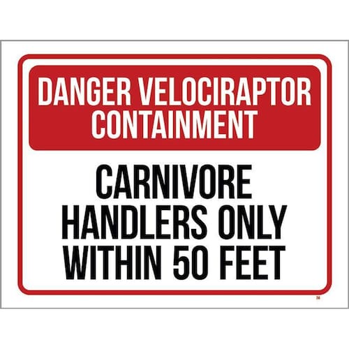 Kit 3 Placas Decorativa - Danger Velociraptor Containment Placas de sinalizaço fabricadas com poliestireno de alto impacto PSAI de 2mm e impressão ultravioleta.