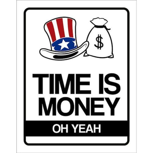 Kit 3 Placas Decorativa Time Is Money Oh Yeah 36x46 Placas de sinalizaço fabricadas com poliestireno de alto impacto PSAI de 2mm e impressão ultravioleta.