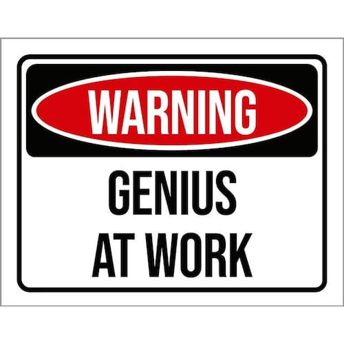 Kit 3 Placas Decorativa - Warning Genius At Work Placas de sinalizaço fabricadas com poliestireno de alto impacto PSAI de 2mm e impressão ultravioleta.