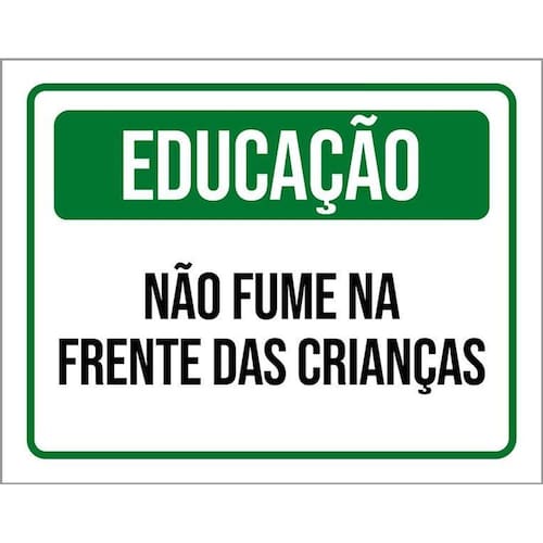 Kit 3 Placas Educação Não Fume Na Frente Das Crianças Placas de sinalizaço fabricadas com poliestireno de alto impacto PSAI de 2mm e impressão ultravioleta.