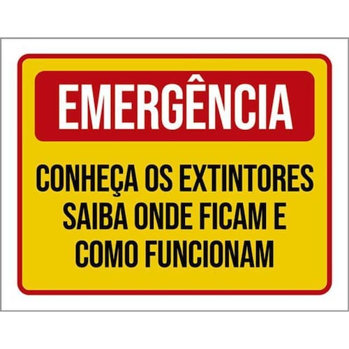Kit 3 Placas Emergência Conheça Extintores Onde Ficam Placas de sinalizaço fabricadas com poliestireno de alto impacto PSAI de 2mm e impressão ultravioleta.