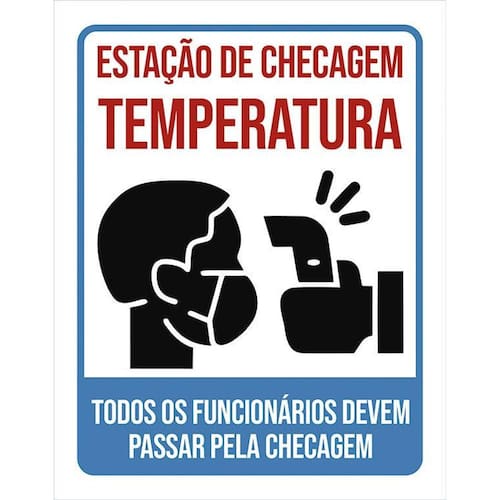 Kit 3 Placas Estação Checagem Temperatura Funcionários Placas de sinalizaço fabricadas com poliestireno de alto impacto PSAI de 2mm e impressão ultravioleta.