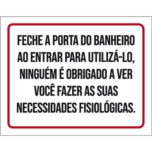Kit 3 Placas Fecha A Porta Do Banheiro Ao Entrar Placas de sinalizaço fabricadas com poliestireno de alto impacto PSAI de 2mm e impressão ultravioleta.