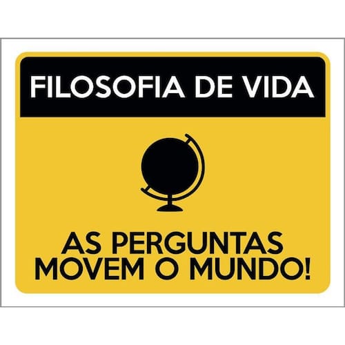 Kit 3 Placas Filosofia De Vida As Perguntas Movem Mundo Placas de sinalizaço fabricadas com poliestireno de alto impacto PSAI de 2mm e impressão ultravioleta.