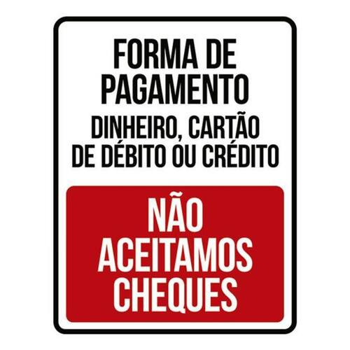 Kit 3 Placas Forma Pagamento Não Aceitamos Cheques 36x46 Placas de sinalizaço fabricadas com poliestireno de alto impacto PSAI de 2mm e impressão ultravioleta.