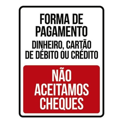 Kit 3 Placas Forma Pagamento Não Aceitamos Cheques Placas de sinalizaço fabricadas com poliestireno de alto impacto PSAI de 2mm e impressão ultravioleta.