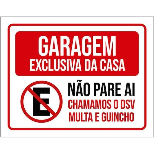 Kit 3 Placas Garagem Exclusiva Casa Não Pare Ai Placas de sinalizaço fabricadas com poliestireno de alto impacto PSAI de 2mm e impressão ultravioleta.
