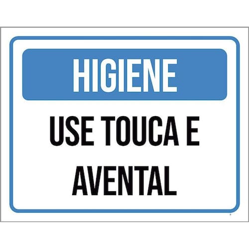 Kit 3 Placas Higiene Use Touca E Avental Placas de sinalizaço fabricadas com poliestireno de alto impacto PSAI de 2mm e impressão ultravioleta.