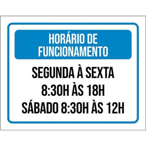 Kit 3 Placas Horário Funcionamento Segunda Sexta Azul Placas de sinalizaço fabricadas com poliestireno de alto impacto PSAI de 2mm e impressão ultravioleta.