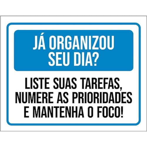 Kit 3 Placas Já Organizou Seu Dia Liste Suas Tarefas Placas de sinalizaço fabricadas com poliestireno de alto impacto PSAI de 2mm e impressão ultravioleta.