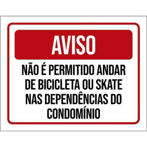 Kit 3 Placas Não Permitido Andar Bicicleta Skate Condomínio Placas de sinalizaço fabricadas com poliestireno de alto impacto PSAI de 2mm e impressão ultravioleta.