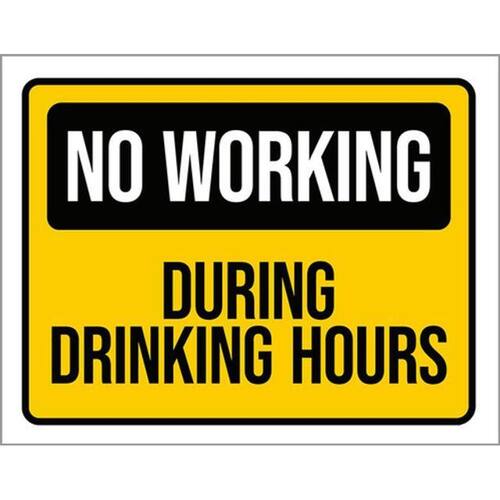 Kit 3 Placas No Working During Drinking Hours Placas de sinalizaço fabricadas com poliestireno de alto impacto PSAI de 2mm e impressão ultravioleta.