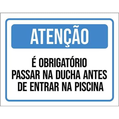 Kit 3 Placas Obrigatório Ducha Antes Piscina 36x46 Placas de sinalizaço fabricadas com poliestireno de alto impacto PSAI de 2mm e impressão ultravioleta.