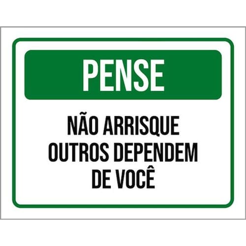 Kit 3 Placas Pense Não Arrisque Outros Dependem De Você Placas de sinalizaço fabricadas com poliestireno de alto impacto PSAI de 2mm e impressão ultravioleta.