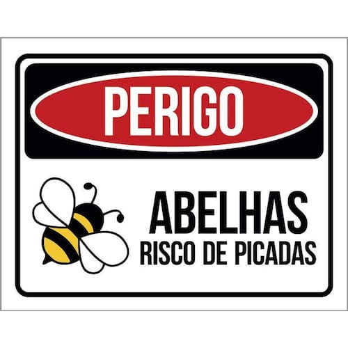 Kit 3 Placas Perigo - Abelhas Risco De Picadas Placas de sinalizaço fabricadas com poliestireno de alto impacto PSAI de 2mm e impressão ultravioleta.