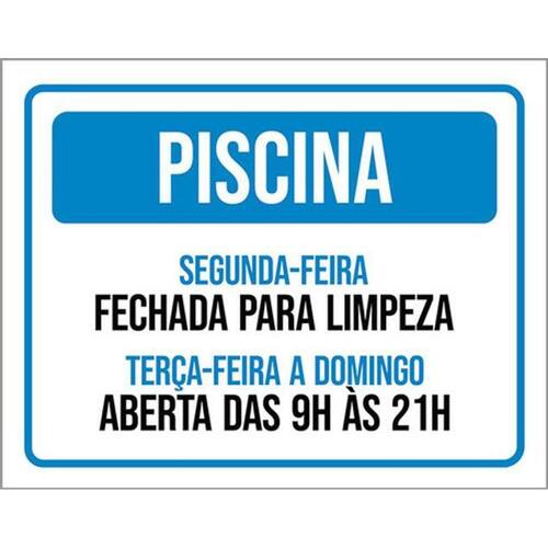 Kit 3 Placas Piscina Fechada Limpeza Placas de sinalizaço fabricadas com poliestireno de alto impacto PSAI de 2mm e impressão ultravioleta.