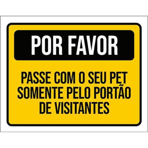 Kit 3 Placas Por Favor Passe Pet Portão Visitantes Placas de sinalizaço fabricadas com poliestireno de alto impacto PSAI de 2mm e impressão ultravioleta.