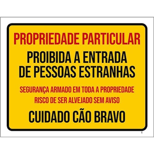 Kit 3 Placas Proibida Entrada Risco Alvejado Cão Bravo
