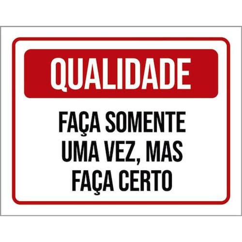 Kit 3 Placas Qualidade Faça Somente Uma Vez Placas de sinalizaço fabricadas com poliestireno de alto impacto PSAI de 2mm e impressão ultravioleta.