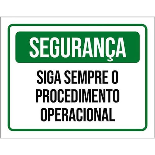 Kit 3 Placas Segurança Siga Sempre Procedimento Operacional Placas de sinalizaço fabricadas com poliestireno de alto impacto PSAI de 2mm e impressão ultravioleta.