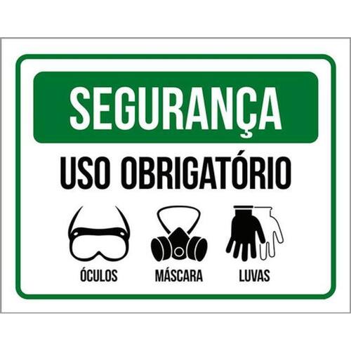 Kit 3 Placas Segurança Uso Obrigatório Óculos Máscara Luva Placas de sinalizaço fabricadas com poliestireno de alto impacto PSAI de 2mm e impressão ultravioleta.