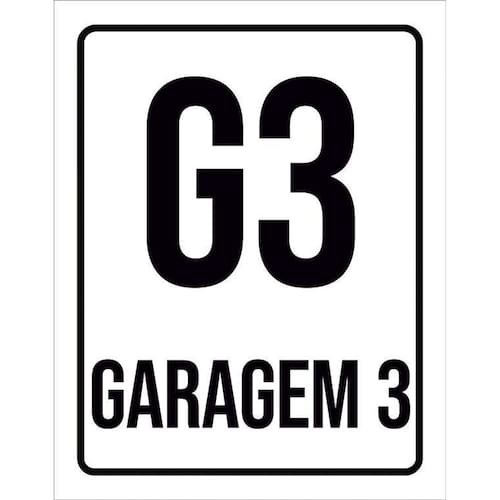 Kit 3 Placas Sinalização Ambiente Indicativo G3 Garagem 3 Placas de sinalizaço fabricadas com poliestireno de alto impacto PSAI de 2mm e impressão ultravioleta.
