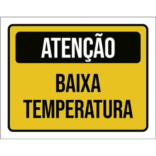 Kit 3 Placas Sinalização Atenção Baixa Temperatura Placas de sinalizaço fabricadas com poliestireno de alto impacto PSAI de 2mm e impressão ultravioleta.