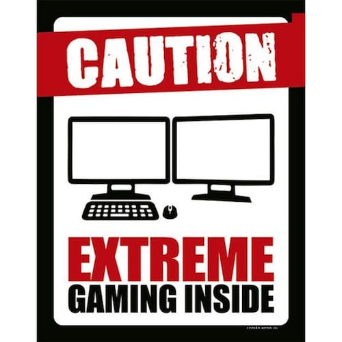 Kit 3 Placas Sinalização - Caution Extreme Gaming Inside Pc Placas de sinalizaço fabricadas com poliestireno de alto impacto PSAI de 2mm e impressão ultravioleta.