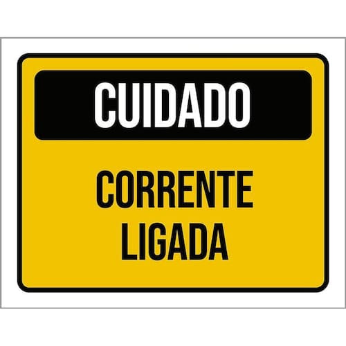 Kit 3 Placas Sinalização Cuidado Corrente Ligada Placas de sinalizaço fabricadas com poliestireno de alto impacto PSAI de 2mm e impressão ultravioleta.