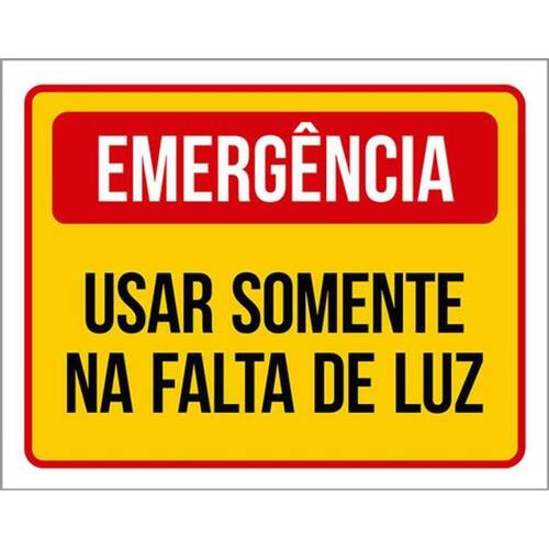 Kit 3 Placas Sinalização - Emergência Usar Somente Falta Luz Placas de sinalizaço fabricadas com poliestireno de alto impacto PSAI de 2mm e impressão ultravioleta.