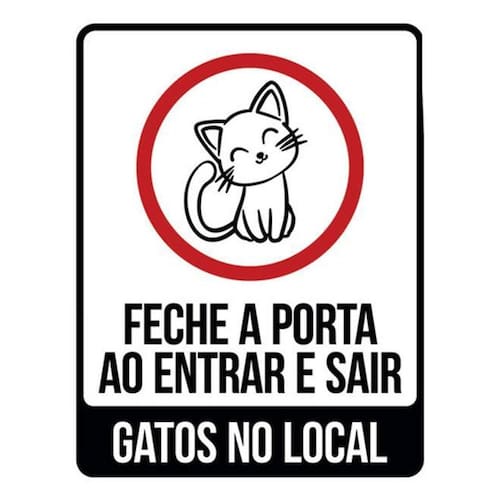 Kit 3 Placas Sinalização Fecha Porta Entrar Sair Gatos Local Placas de sinalizaço fabricadas com poliestireno de alto impacto PSAI de 2mm e impressão ultravioleta.
