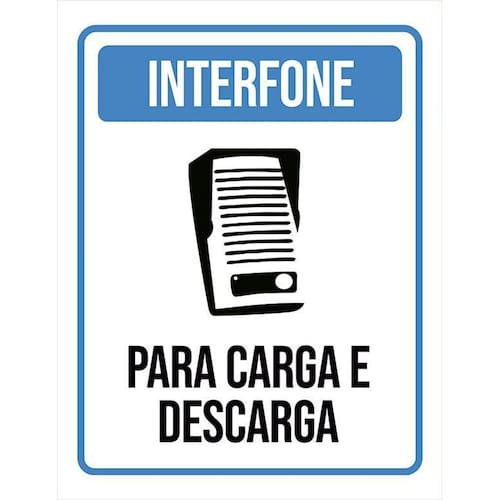 Kit 3 Placas Sinalização - Interfone Carga Descarga Ml3782 Placas de sinalizaço fabricadas com poliestireno de alto impacto PSAI de 2mm e impressão ultravioleta.