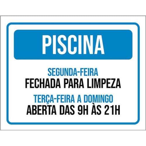 Kit 3 Placas Sinalização - Piscina Fechada Limpeza Placas de sinalizaço fabricadas com poliestireno de alto impacto PSAI de 2mm e impressão ultravioleta.