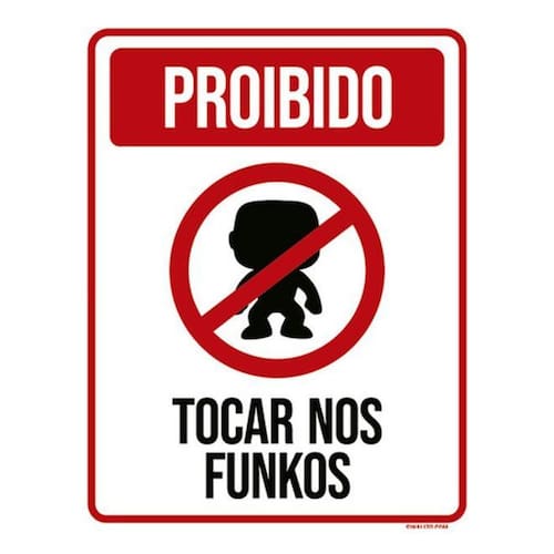 Kit 3 Placas Sinalização - Proibido Tocar Nos Funkos Ícone Placas de sinalizaço fabricadas com poliestireno de alto impacto PSAI de 2mm e impressão ultravioleta.