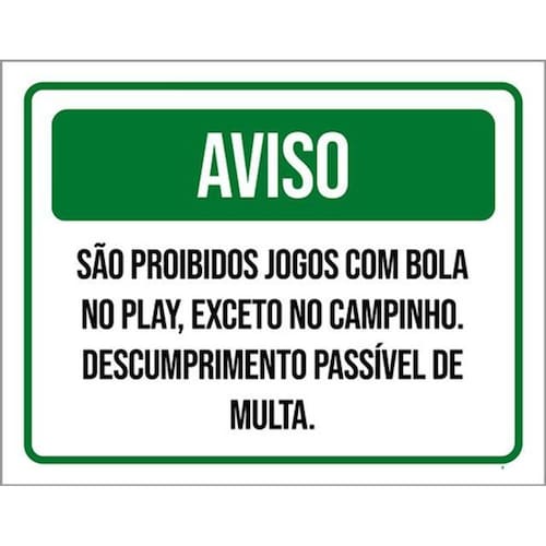 Kit 3 Placas Sinalização - Proibidosjogos Bola Play Campinho Placas de sinalizaço fabricadas com poliestireno de alto impacto PSAI de 2mm e impressão ultravioleta.