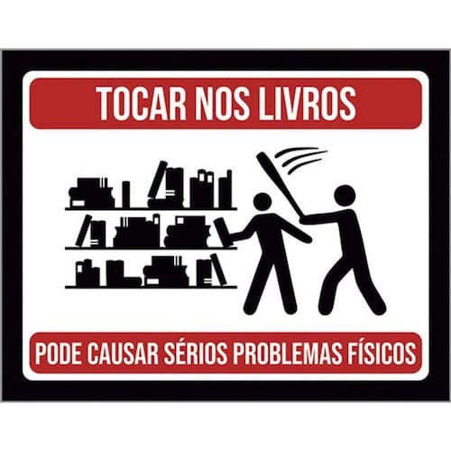Kit 3 Placas Sinalização - Tocar Nos Livros Risco Saúde Placas de sinalizaço fabricadas com poliestireno de alto impacto PSAI de 2mm e impressão ultravioleta.