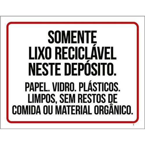 Kit 3 Placas Somente Lixo Reciclável Neste Depósito Vidro Placas de sinalizaço fabricadas com poliestireno de alto impacto PSAI de 2mm e impressão ultravioleta.