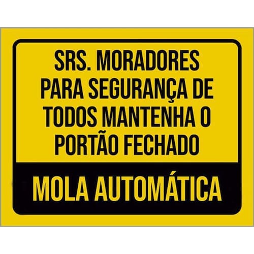 Kit 3 Placas Srs Moradores Portão Fechado Mola Automática Placas de sinalizaço fabricadas com poliestireno de alto impacto PSAI de 2mm e impressão ultravioleta.