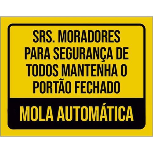 Kit 3 Placas Srs Moradores Portão Fechado Mola Automática Placas de sinalizaço fabricadas com poliestireno de alto impacto PSAI de 2mm e impressão ultravioleta.