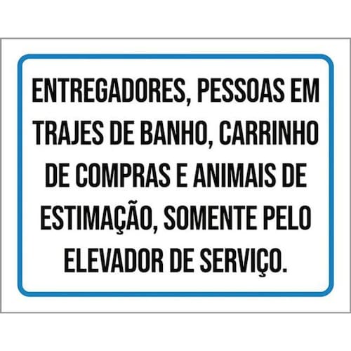 Kit 3 Placas Trajes Banho Somente Pelo Elevador De Serviço Placas de sinalizaço fabricadas com poliestireno de alto impacto PSAI de 2mm e impressão ultravioleta.