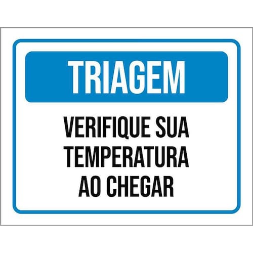 Kit 3 Placas Triagem Verifique Sua Temperatura Ao Chegar Placas de sinalizaço fabricadas com poliestireno de alto impacto PSAI de 2mm e impressão ultravioleta.