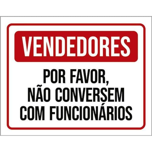 Kit 3 Placas Vendedores Não Conversem Funcionários Placas de sinalizaço fabricadas com poliestireno de alto impacto PSAI de 2mm e impressão ultravioleta.