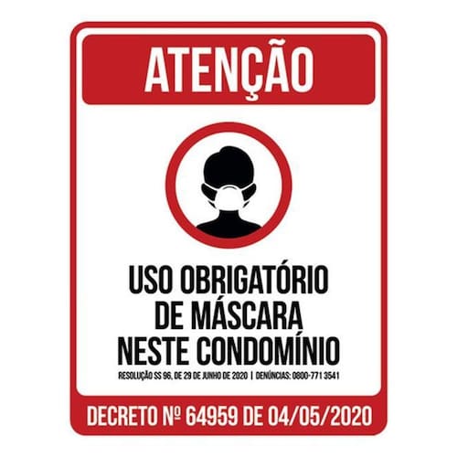 Kit 3 Placas Vermelha Uso Obrigatório Máscara Condomínio Placas de sinalizaço fabricadas com poliestireno de alto impacto PSAI de 2mm e impressão ultravioleta.