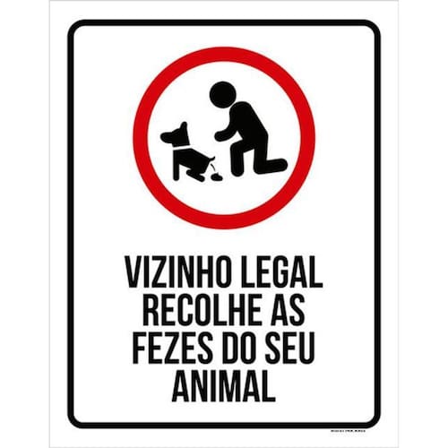 Kit 3 Placas Vizinho Legal Recolhe Fezes Animal 36x46 Placas de sinalizaço fabricadas com poliestireno de alto impacto PSAI de 2mm e impressão ultravioleta.