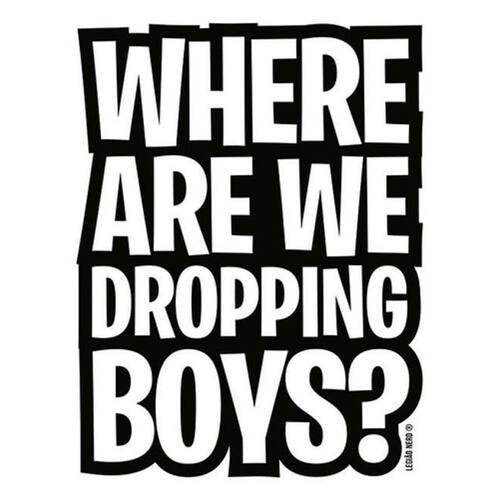 Kit 3 Placas Where Are We Dropping Boys Placas de sinalizaço fabricadas com poliestireno de alto impacto PSAI de 2mm e impressão ultravioleta.