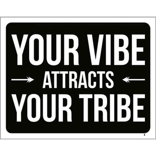 Kit 3 Placas Your Vibe Attracts Your Tribe 36x46 Placas de sinalizaço fabricadas com poliestireno de alto impacto PSAI de 2mm e impressão ultravioleta.