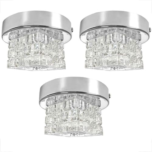 Kit 3 Plafon Spot Cristal Sobrepor Prata Polido Banheiro