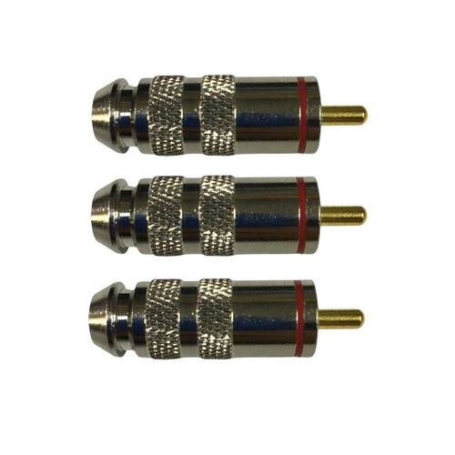 Kit 3 Plug RCA Macho Metal Cromado Ponta Dourada - Vermelho