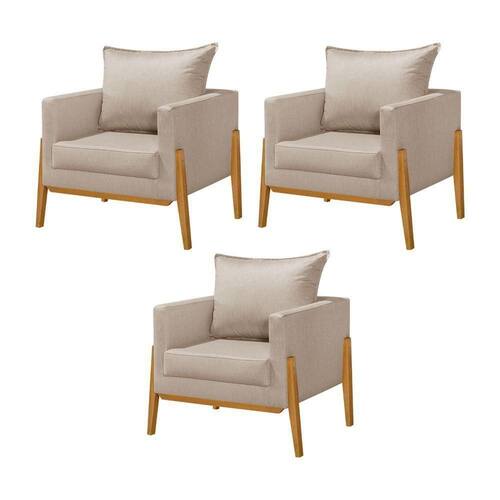 Kit 3 Poltronas Living Base E Pés Em Madeira Maciça Madagascar Linho Bege - Cor: Bege A Poltrona Decorativa Madagascar é uma combinação perfeita de conforto e estilo, com pés em madeira maciça de eucalipto. Essa poltrona oferece uma adição robusta e durável ao seu espaço, permitindo que você relaxe com total tranquilidade.CaracterísticasTipo: Poltrona Modelo: Madagascar Tecido: Linho Cor: Bege DIMENSÕES DO PRODUTOAltura: 88cmLargura: 84cmComprimento: 75cmInformações adicionais:- Materiais da estrutura: Madeira ecológica, MDF- Material dos pés: Madeira Maciça ecológica - Cor da madeira: - Requer montagem: Sim- Limpeza: Não usar produtos abrasivos, usar apenas peno seco e limpo.- Peso máximo suportado: 100kg- Garantia: 3 Meses à partir da emissão da ÇÃOAS IMAGENS SÃO MERAMENTE ILUSTRATIVAS E PODEM SOFRER VARIAÇÕES DE COR E PEQUENOS DETALHES DE ACORDO COM O SEU MONITOR, ILUMINAÇÃO DO AMBIENTE E ATÉ MESMO A SUA PERCEPÇÃO 3 Poltronas Living Base e PÃs em Madeira MaciÃa Madagascar Linho Bege Marca: Villa Casa Decor